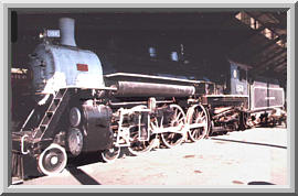 On the back of the tender is a 55 gallon drum of kerosene. I climb up and open the valve at the drum, and climb back down into the cab. I unchain the kerosene burner from the brakestand, and set it up, pointed into the firebox. I connect a hose to the kerosene line coming down off the tender, and another hose to an air compressor outside the building. I take a softball-sized piece of waste, and soak in in kerosene for a minute. Placing it on a shelf of firebrick just inside the firedoor, I whip out a book of matches and light them (yes, the whole book). I then light the waste, and let it get started burning, plug in the burner, and start it up. After a little finagling with the fuel/air mixture, I get a fine mist of kerosene and air that ignites with a WHOOMP! sound. It's 5:30 AM. The burner is now beginning to warm up the engine, and I can take a break. Time for my coffee and rolls.
