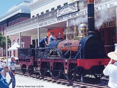 Railfair '99 was held in Sacramento June 18-27, and the San Diego Railroad Museum sent personnel and equipment. Many volunteers manned our booth greeting hundreds of visitors. We told them about our museum operations in Campo, CA., and about the history of the San Diego & Arizona Railway. Our 1932 Santa Maria Valley Railway railbus was on display in the roundhouse.
